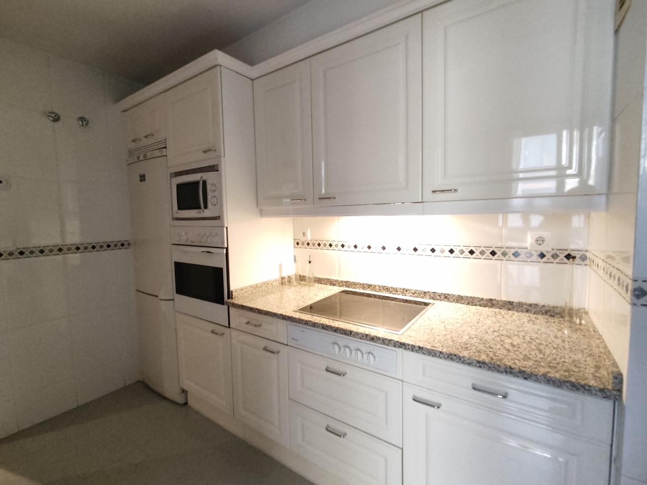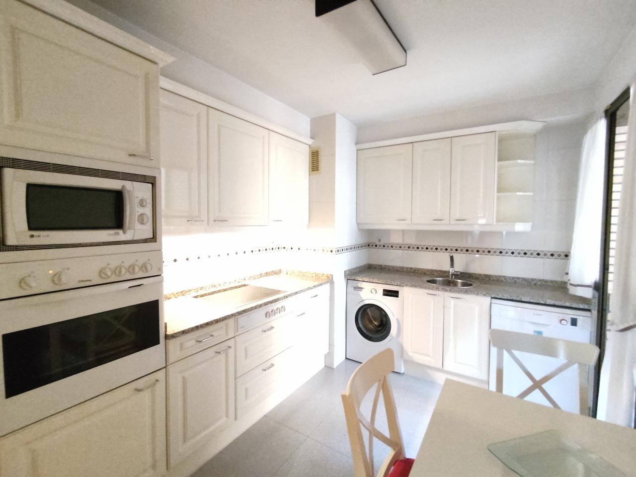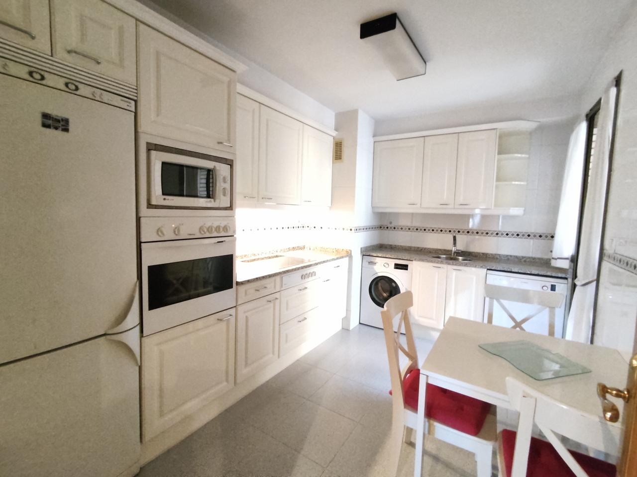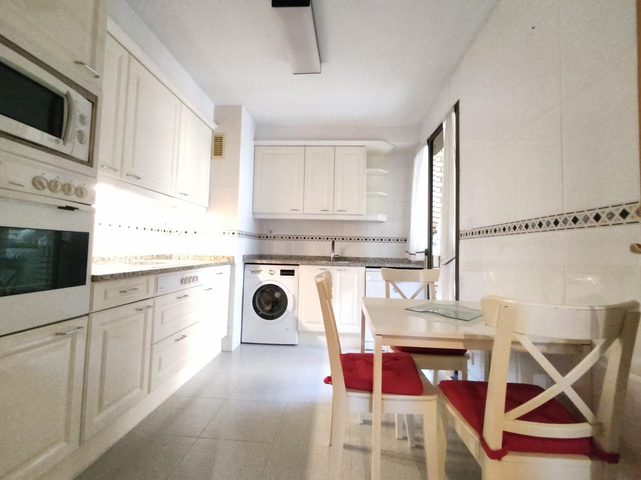 Cocina Independiente, Amueblada con Muebles Altos y Bajos, Totalmente Equipada con todos los electrodomésticos y zona para comer.